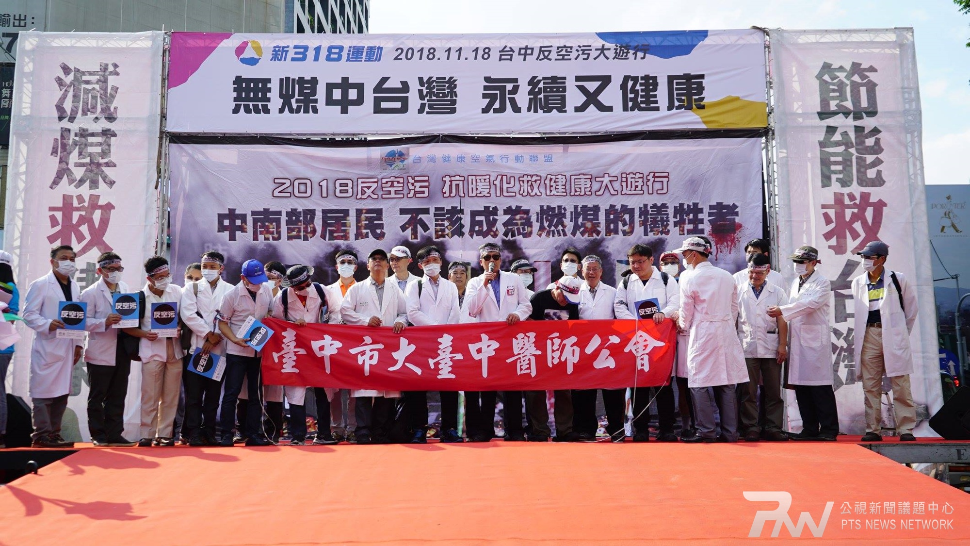 11月18日,選前最後一個週日,全台反空污大遊行台中場,在台中市民廣場舉行,活動尚未開始,現場即已爆發選戰煙硝味。主辦單位為防止選舉拼場,模糊遊行主軸,不得不搬出「二不舉、一尊重」的告示,要求政黨、候選人不舉直立旗幟,尊重各自表達意見。