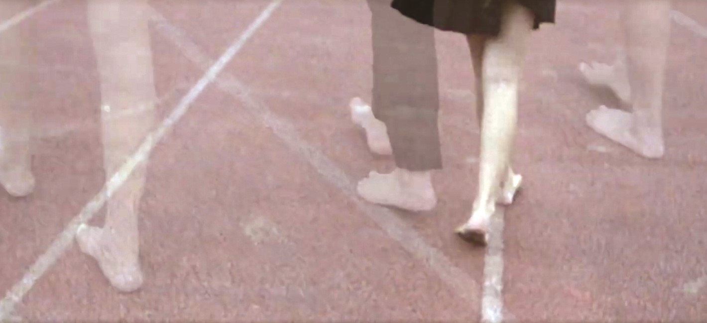 接著,赤足,腳步輕盈的如要飛起,恣意奔跑於無人校園中的身影,大口呼吸自由的空氣。然後,馬頭怪人出現,將白鞋扔在剛才還在歡笑的女孩們面前。